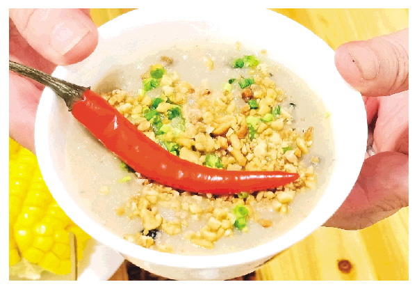 □本报记者刘菁 通讯员时秋霞 时荣林/文 记者刘菁/摄 水车镇是灌阳县一个富有人文气息的乡镇,当地人说,如果想更加了解水车,不妨从一碗“茶”开始。 这碗“茶”有什么奇妙的呢?11月2日大清早,记者来到了水车镇蒋香姑的家里。“你们坐一下,马上就可以喝茶了。”蒋大姐穿着围裙,搬着石磨,笑盈盈地招呼记者。 对于灌阳的油茶,记者早有耳闻,那水车的这碗“茶”又有什么特色呢?记者看到蒋大姐厨房里摆着的食材有香菇、红枣、绿豆、八角、茶叶、豆豉、姜、蒜、米和肉末,这奇怪的搭配让记者不禁发问:大米和肉末也能放到茶里吗?蒋大姐卖了个关子,说着就将泡好的大米放到石磨上开始磨。乳白色的米浆顺着石磨流出,不一会儿就盛了满满一碗。蒋大姐说这是制作米浆茶的“主角”。 接着,蒋大姐取出一口小锅,将剩余的大米放到锅里小火慢炒。炒制大米时使用的筷子,已经被熏得焦黑,可想而知,这碗“茶”应该是水车人平日所爱,也是蒋大姐的拿手厨艺。大米炒至微黄后,将绿豆放到锅里一同炒制。“等一下你听到噼里啪啦的声音,就说明炒的时间差不多了。” 不一会儿,锅中绿豆发出声响,绿豆和大米在小火慢炒中散发出阵阵焦香。这时蒋大姐拿出她的秘方——猪油,加入锅中,将绿豆和大米充分裹上猪油,然后将剩余的茶叶、香菇、红枣、豆豉、肉末等食材,全部加到锅中,再加一点水,少许食盐调味,将食材全部煮熟。此时锅内材料丰富,呈现出与茶叶泡开后相近的茶水色。 锅中的食材散发出香味的同时,蒋大姐再把刚磨好的米浆加入锅中。“等到锅中冒着黏稠的泡泡,就可以出锅了。”大约3分钟后,锅内的汤色由茶水色变得接近肉色,清亮的茶汤也变得粘浊,还“咕嘟咕嘟”地冒着黏稠泡泡。这时蒋大姐取来4个巴掌大的小碗,用筛子将锅内的食材捞出,只留下肉色的“茶汤”,倒入碗中后,在碗中加入葱段、花生碎以及自家泡的酸辣椒,这碗“茶”就出锅了。 “这就是我们水车特有的米浆茶,你来尝尝。”为了这碗米浆茶,水车人习惯在喝茶时配上许多茶点,可见米浆茶在水车人心目中的地位。“我建议你不要搅拌,先喝一口茶,然后把酸辣椒咬碎了拌在茶里,再尝尝。”按照蒋大姐的方法,喝下第一口,味道竟无法形容,花生碎的口感伴着微微的咸味和米浆的味道。将酸辣椒咬破后,拌着米浆茶再尝一口。也许是酸辣椒的刺激,竟尝出米浆茶中的肉味,搅拌过后的米浆茶,不如第一口浓稠,反而十分顺滑,不知不觉就喝完了一碗,不仅感觉胃里暖暖的,也有了稍稍的饱腹感。 听到记者说喝一碗就有了饱腹感,蒋大姐说:“以前吃不饱饭的时候就是吃这个,材料也没有现在丰富。”老一辈水车人在食不果腹的年代,想出了将米磨成米浆,再配上手上有的食物,例如红薯、芋头,一起放到锅里煮,做成米浆茶,这样一来,即使家里人口多,也不会饿肚子了。 时代变迁,水车人民的生活越过越好,再也不会出现食不果腹的现象,这碗米浆茶成了水车人特有的回忆。这道忆苦思甜的美食,不仅记录了水车人的过往,也反映着水车人的现在,如这碗米浆茶一般有滋有味、丰富多彩。