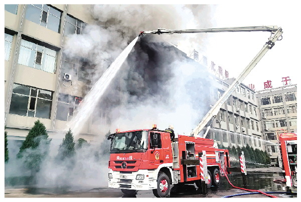 山西省吕梁市离石区永聚煤业联建楼火灾救援现场(11月16日摄)。