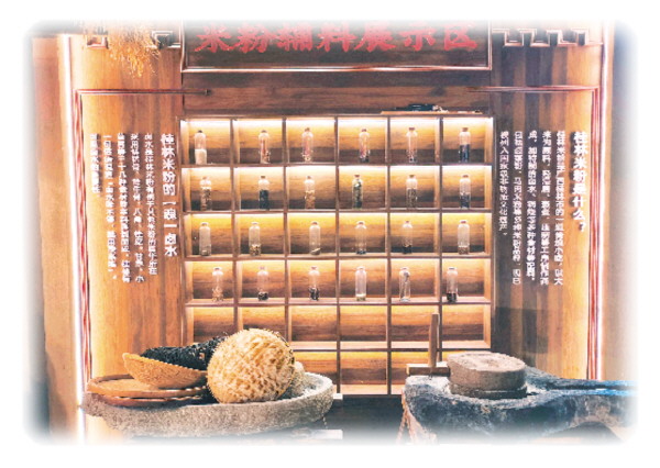桂林米粉文化中心除了堂食店外,还专门设有鲜榨米粉非遗工艺展厅。图为米粉辅料展示区。