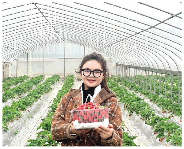 “我们选取优质品种,坚持绿色种植,全程使用有机肥,采取人工除草和蜜蜂自然授粉的种植方式,保证充足的日照和生长周期,确保长出的草莓大小适中,口感香甜。”黄能发介绍,现在成熟的草莓品种是贵妃,游客可以先品尝后采摘。到丰产期的时候,他的基地每天可产草莓300至400斤。