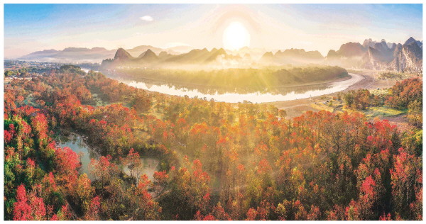 ▲乌桕经霜满树红,此间美景醉游人。随着气温变化,这几日,桂林市七星区竹江村的乌桕滩如油画一般美丽绚烂,成为冬日百里漓江最美的风景,每天吸引众多市民、游客前往欣赏“醉美”红叶。 记者唐艳兰 摄