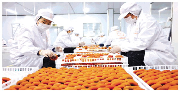 平乐柿饼标准化生产车间内工人在加工柿饼。