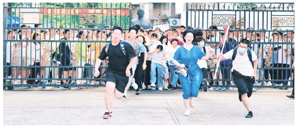 2023年是广西“老高考”的最后一年,即实行文理分科的最后一次高考,桂林市参加普通高考考生37903人,人数再创新高,比2022年增加4063人。图为高考结束当天,市中山中学考点的考生冲出考场瞬间。记者苏展 摄