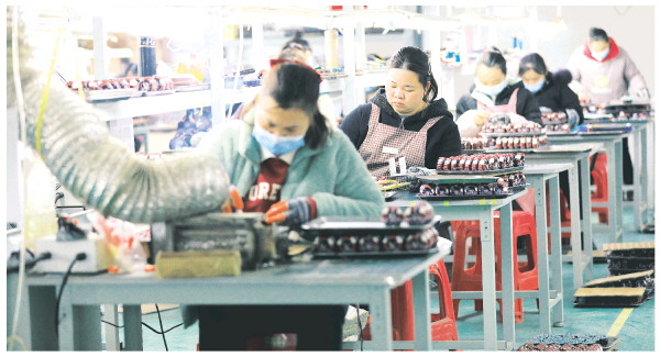 ◤一月四日,在恭城燕新工业园区鑫晨电子有限公司的车间里,工人正在抓紧生产。