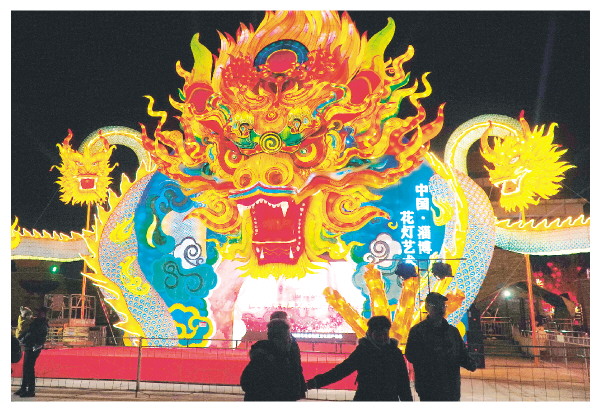 ▲1月4日,人们在2024年淄博玉黛湖花灯会上赏灯游览。近日,2024年淄博玉黛湖花灯会在山东省淄博市张店区玉黛湖公园拉开帷幕。此次花灯会以“穿越千年 点亮盛世”为主题,共布置大型花灯60余组,将持续举办至3月11日。 新华社记者徐速绘 摄