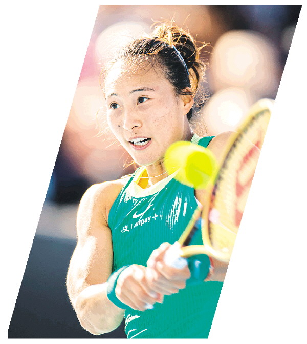 1月18日,郑钦文在比赛中回球。 新华社发 (胡泾辰 摄)