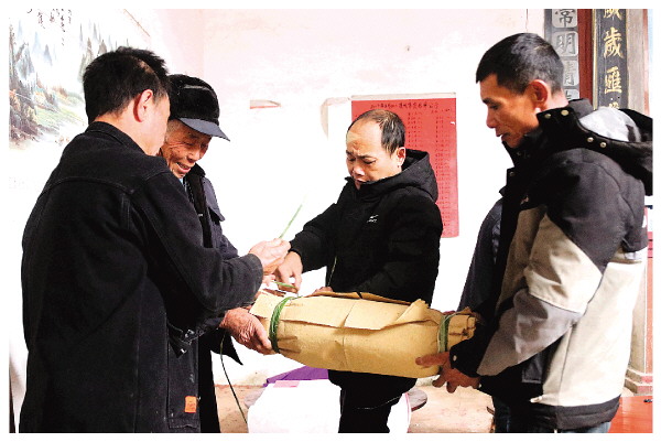 制作花炮当天,记者在人群中看到一个“熟人”,他就是在2023年举办的花炮节上抢到花炮的“福主”——何灶明,他专程从莲花镇势江村带着妻女回到石口村参与花炮制作。“去年能抢到花炮全靠缘分,今天回来心情特别好,今年的花炮节一定再来石口村抢花炮,为新的一年争个好彩头。”何灶明说。