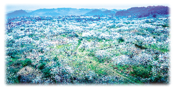 本报讯(记者何月 通讯员覃茜)近日,在平乐县阳安乡石面山村3000亩李花齐齐绽放,玉枝攒霜、裁雪为花,一片人间香雪海。