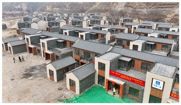 这是1月30日在北京市门头沟区沿河口村拍摄的灾后重建安置房(无人机照片)。
