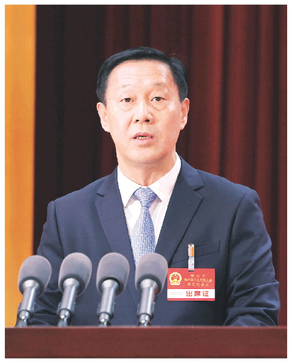 赵仲华作市人大常委会工作报告。 记者李凯 摄