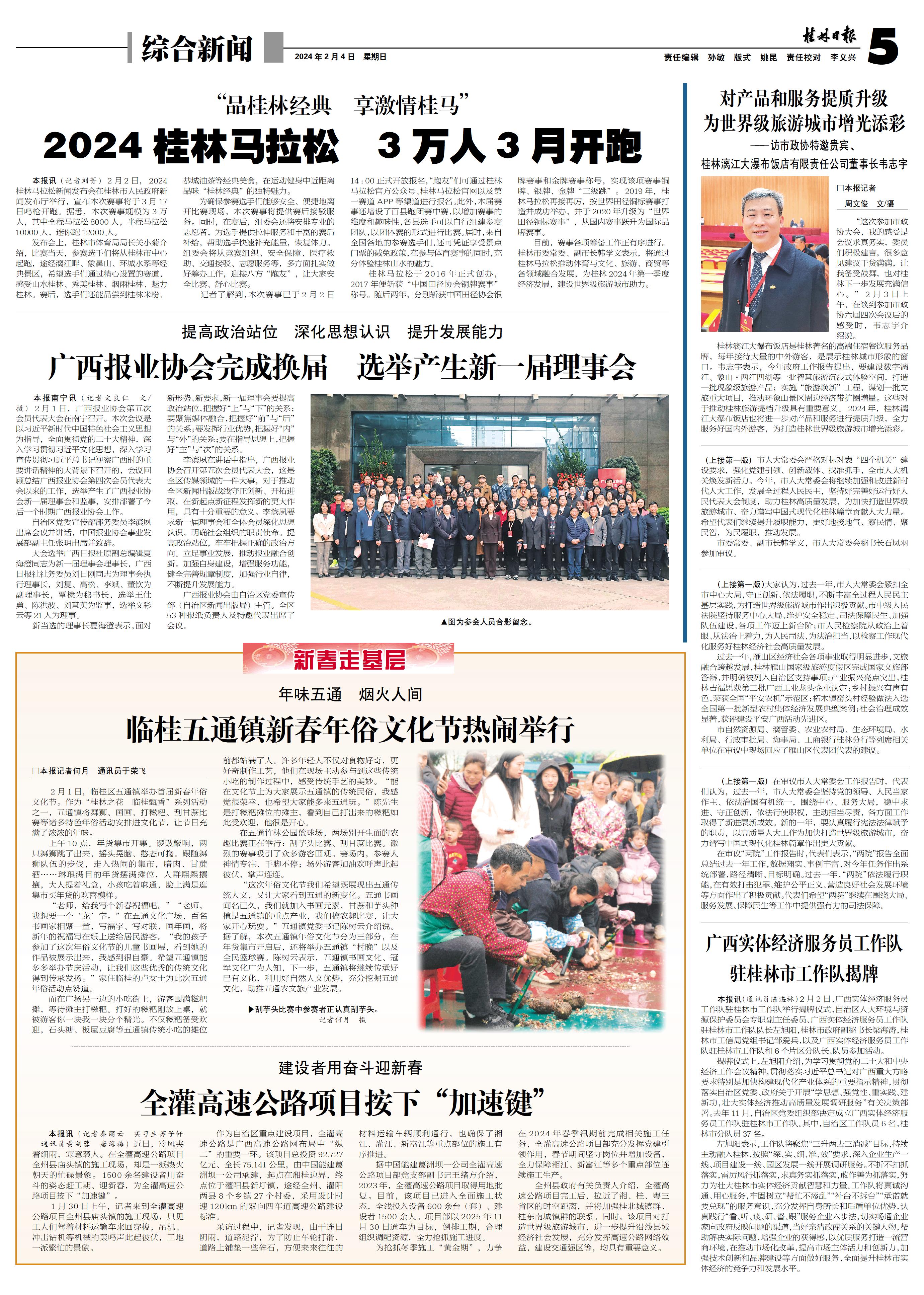 □本报记者何月 通讯员于荣飞 2月1日,临桂区五通镇举办首届新春年俗文化节。作为“桂林之花 临桂甄香”系列活动之一,五通镇将舞狮、画画、打糍粑、刮甘蔗比赛等诸多特色年俗活动安排进文化节,让节日充满了浓浓的年味。 上午10点,年货集市开集。锣鼓敲响,两只舞狮跳了出来,摇头晃脑、憨态可掬。跟随舞狮队伍的步伐,走入热闹的集市,腊肉、甘蔗酒……琳琅满目的年货摆满摊位,人群熙熙攘攘,大人提着礼盒,小孩吃着麻通,脸上满是逛集市买年货的欢喜模样。 “老师,给我写个新春祝福吧。”“老师,我想要一个‘龙’字。”在五通文化广场,百名书画家相聚一堂,写福字、写对联、画年画,将新年的祝福写在纸上送给居民游客。“我的孩子参加了这次年俗文化节的儿童书画展,看到她的作品被展示出来,我感到很自豪。希望五通镇能多多举办节庆活动,让我们这些优秀的传统文化得到传承发扬。”家住临桂的卢女士为此次五通年俗活动点赞道。 而在广场另一边的小吃街上,游客围满糍粑摊,等待摊主打糍粑。打好的糍粑刚放上桌,就被游客你一块我一块分个精光。不仅糍粑备受欢迎,石头糖、板屋豆腐等五通镇传统小吃的摊位前都站满了人。许多年轻人不仅对食物好奇,更好奇制作工艺,他们在现场主动参与到这些传统小吃的制作过程中,感受传统手艺的美妙。“能在文化节上为大家展示五通镇的传统民俗,我感觉很荣幸,也希望大家能多来五通玩。”陈先生是打糍粑摊位的摊主,看到自己打出来的糍粑如此受欢迎,他很是开心。 在五通竹林公园篮球场,两场别开生面的农趣比赛正在举行:刮芋头比赛、刮甘蔗比赛。激烈的赛事吸引了众多游客围观。赛场内,参赛人神情专注、手脚不停;场外游客加油欢呼声此起彼伏,掌声连连。 “这次年俗文化节我们希望既展现出五通传统人文,又让大家看到五通的新变化。五通书画闻名已久,我们就加入书画元素,甘蔗和芋头种植是五通镇的重点产业,我们搞农趣比赛,让大家开心玩耍。”五通镇党委书记陈树云介绍说。据了解,本次五通镇年俗文化节分为三部分,在年货集市开启后,还将举办五通镇“村晚”以及全民篮球赛。陈树云表示,五通镇书画文化、冠军文化广为人知,下一步,五通镇将继续传承好已有文化,利用好自然人文优势,充分挖掘五通文化,助推五通农文旅产业发展。