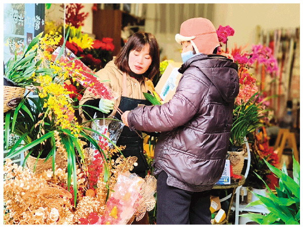 图为象山区一家花店中,市民在精心挑选年宵花。记者韦莎妮娜 摄