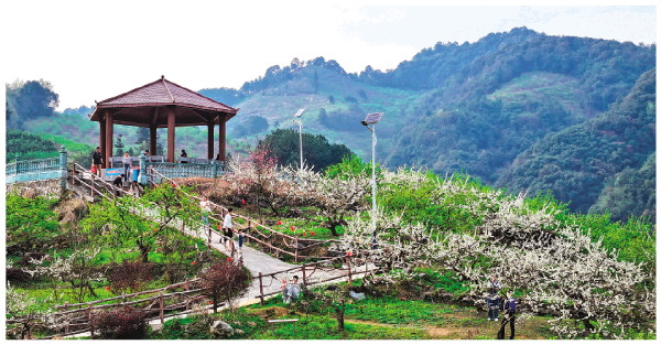 2月20日,荔浦市东昌镇三华李产业核心示范区李花开满山间,不少游客前去赏花踏青。