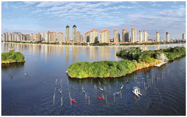 五缘湾不仅保留了原生水面,还打开海堤,引水入湾,清淤活水,实施陆海环境综合整治,留出大片湿地建设公园,构建人水对话的亲密空间,为市民提供了一处“城市绿肺”。