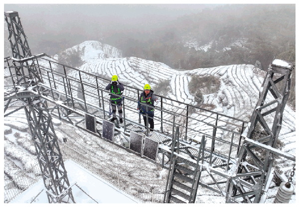 近日,安徽多地迎来低温冰冻雨雪天气,对电力供应、交通运输和群众生产生活带来影响。铁路、供电、供水、交警、市政、环卫等部门工作人员坚守岗位,采取措施积极应对。新华社发(郑贤列 摄)