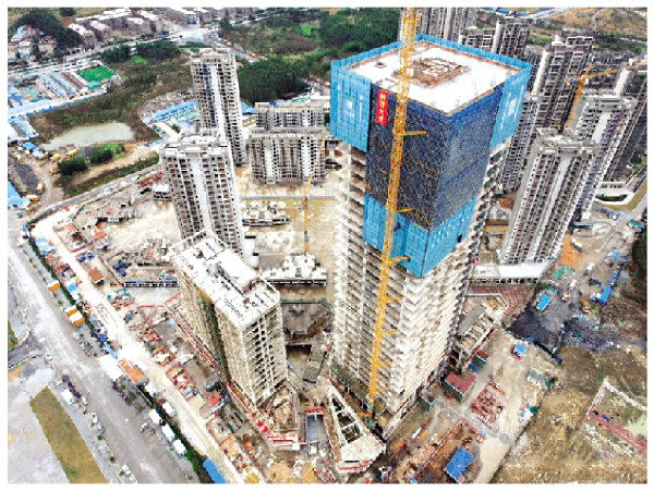 桂林市旅游交通换乘中心项目22号楼主体结构完成封顶节点,标志着换乘中心项目主体结构全面封顶。(中建八局南方公司 供图)