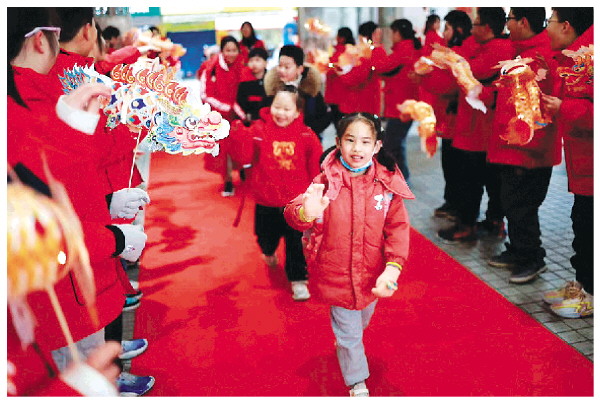 2月25日上午,伴随着激昂的鼓点和大小金龙的舞动,市民主小学的孩子们迎来了新学期。记者陈静 摄