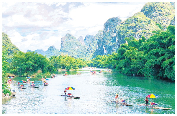 ▲遇龙河上竹筏漂流连绵不断。 邓琳钰 摄
