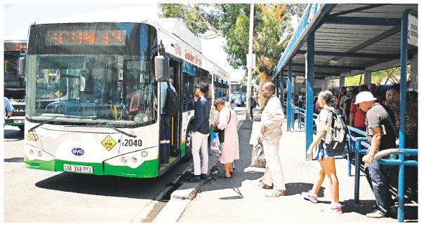 2月28日,在南非立法首都开普敦,人们在公交总站登上一辆比亚迪电动公交车。近年来,南非立法首都开普敦的主要公交车运营商金箭公司多次采购中国制造的电动公交车,方便了当地民众的出行。
