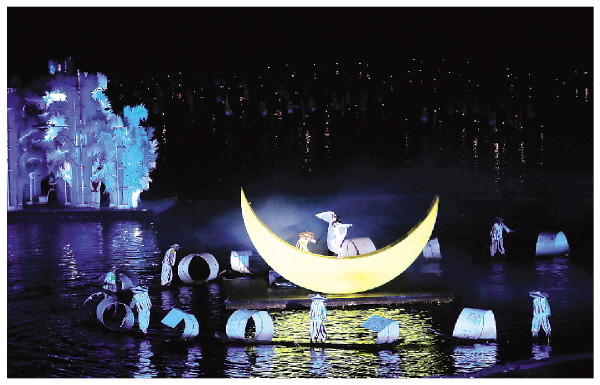 ▲《印象·刘三姐》营造出如梦如幻、天人合一的视听氛围。 (资料图片)