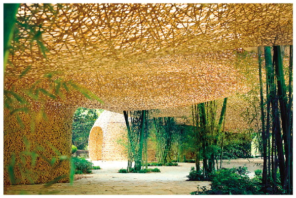 ▲“印象·刘三姐”景区内的竹林亭台楼阁,由中外团队共同研制,整体纯手工编织,耗时两年半,覆盖长约160米、宽14米的空间面积,是关于人与自然“诗意栖居”的最好诠释,已荣获多项国际大奖。 (《印象·刘三姐》艺术团供图)