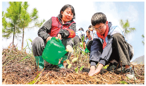 本报讯(记者刘健 通讯员黄宇 阳海翔 文/摄)3月11日,灵川县定江镇赤江村开展义务植树志愿服务活动,以实际行动号召大家植树增绿,共建绿色家园。