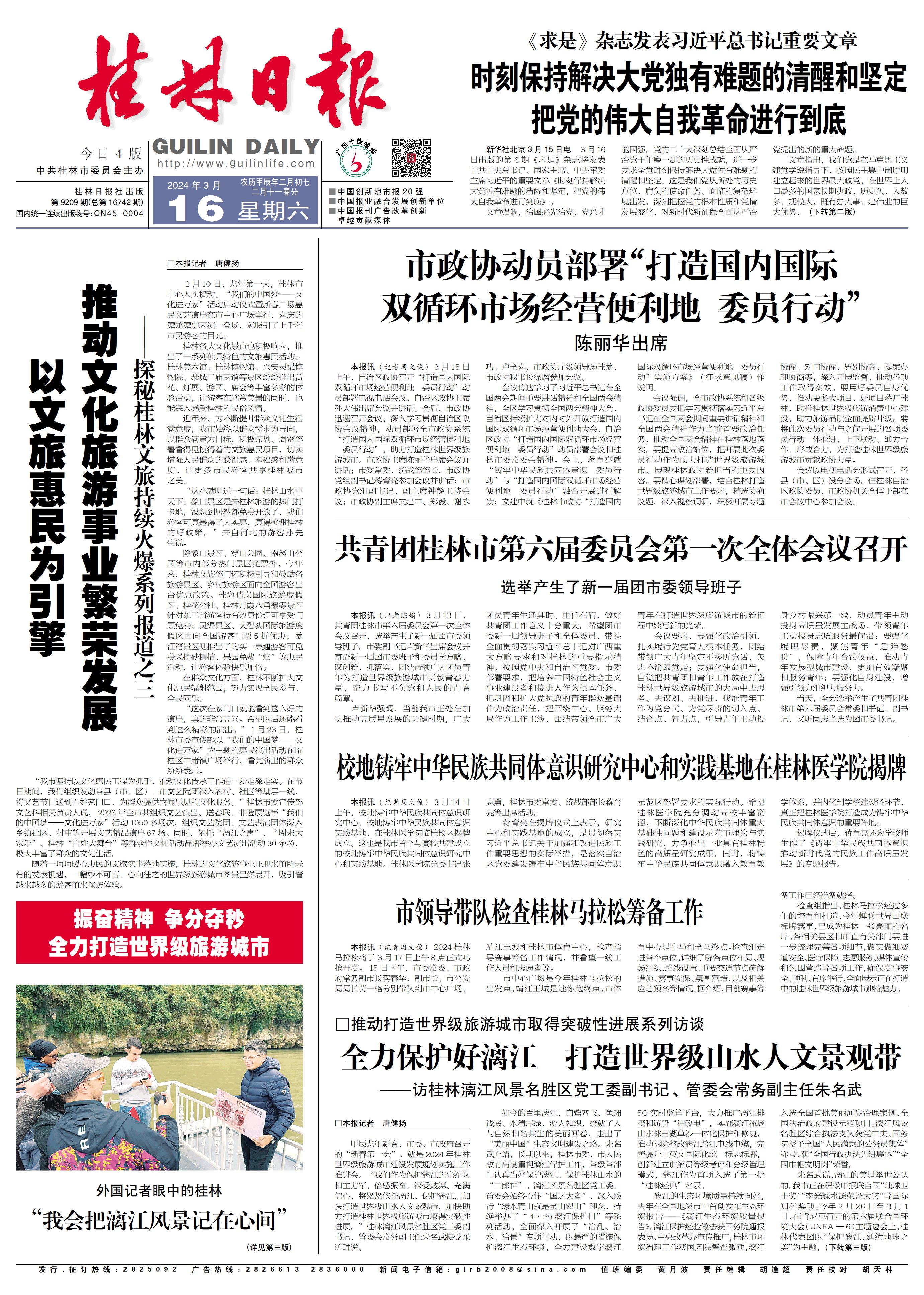 □本报记者 唐健扬 甲辰龙年新春,市委、市政府召开的“新春第一会”,就是2024年桂林世界级旅游城市建设发展规划实施工作推进会。“我们作为保护漓江的先锋队和主力军,倍感振奋、深受鼓舞、充满信心,将紧紧依托漓江、保护漓江,加快打造世界级山水人文景观带,加快助力打造桂林世界级旅游城市取得突破性进展。”桂林漓江风景名胜区党工委副书记、管委会常务副主任朱名武接受采访时说。 如今的百里漓江,白鹭齐飞、鱼翔浅底、水清岸绿、游人如织,绘就了人与自然和谐共生的美丽画卷,走出了“美丽中国”生态文明建设之路。朱名武介绍,长期以来,桂林市委、市人民政府高度重视漓江保护工作,各级各部门认真当好保护漓江、保护桂林山水的“二郎神”。漓江风景名胜区党工委、管委会始终心怀“国之大者”,深入践行“绿水青山就是金山银山”理念,持续举办了“4·25漓江保护日”等系列活动,全面深入开展了“治乱、治水、治景”专项行动,以最严的措施保护漓江生态环境,全力建设数字漓江5G实时监管平台,大力推广漓江排筏和游船“油改电”,实施漓江流域山水林田湖草沙一体化保护和修复,推动拆除整改漓江跨江电线电缆,完善提升中英文国际化统一标志标牌,创新建立讲解员等级考评和分级管理模式,漓江作为首项入选了第一批“桂林经典”名录。 漓江的生态环境质量持续向好,去年在全国地级市中首创发布生态环境报告——《漓江生态环境质量报告》。漓江保护经验做法获国务院通报表扬、中央改革办宣传推广,桂林市环境治理工作获国务院督查激励,漓江入选全国首批美丽河湖治理案例、全国法治政府建设示范项目。漓江风景名胜区综合执法支队获党中央、国务院授予全国“人民满意的公务员集体”称号,获“全国行政执法先进集体”“全国巾帼文明岗”荣誉。 朱名武说,漓江的美是举世公认的。我市正在积极申报联合国“地球卫士奖”“李光耀水源荣誉大奖”等国际知名奖项。今年2月26日至3月1日,在肯尼亚召开的第六届联合国环境大会(UNEA—6)主题边会上,桂林代表团以“保护漓江,延续地球之美”为主题,(下转第三版)