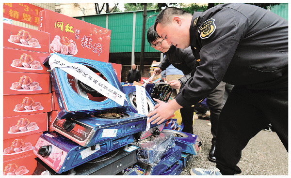 ▲近日,七星区在辖区环卫站开展侵权假冒商品统一销毁活动,以强力行动打击违法违规行为,维护公平竞争的市场秩序。此次销毁物品有案件没收物资68件,涉及产品品类75个,其中食品类产品25个、“两品一械”类产品40个、工业产品10个,涉案货值23.2万元。 记者苏展 通讯员王亚东 摄
