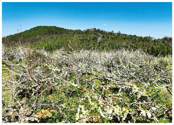在灌阳县文市镇大湾村,连片的李树花开正好,进入花期管护紧要期。