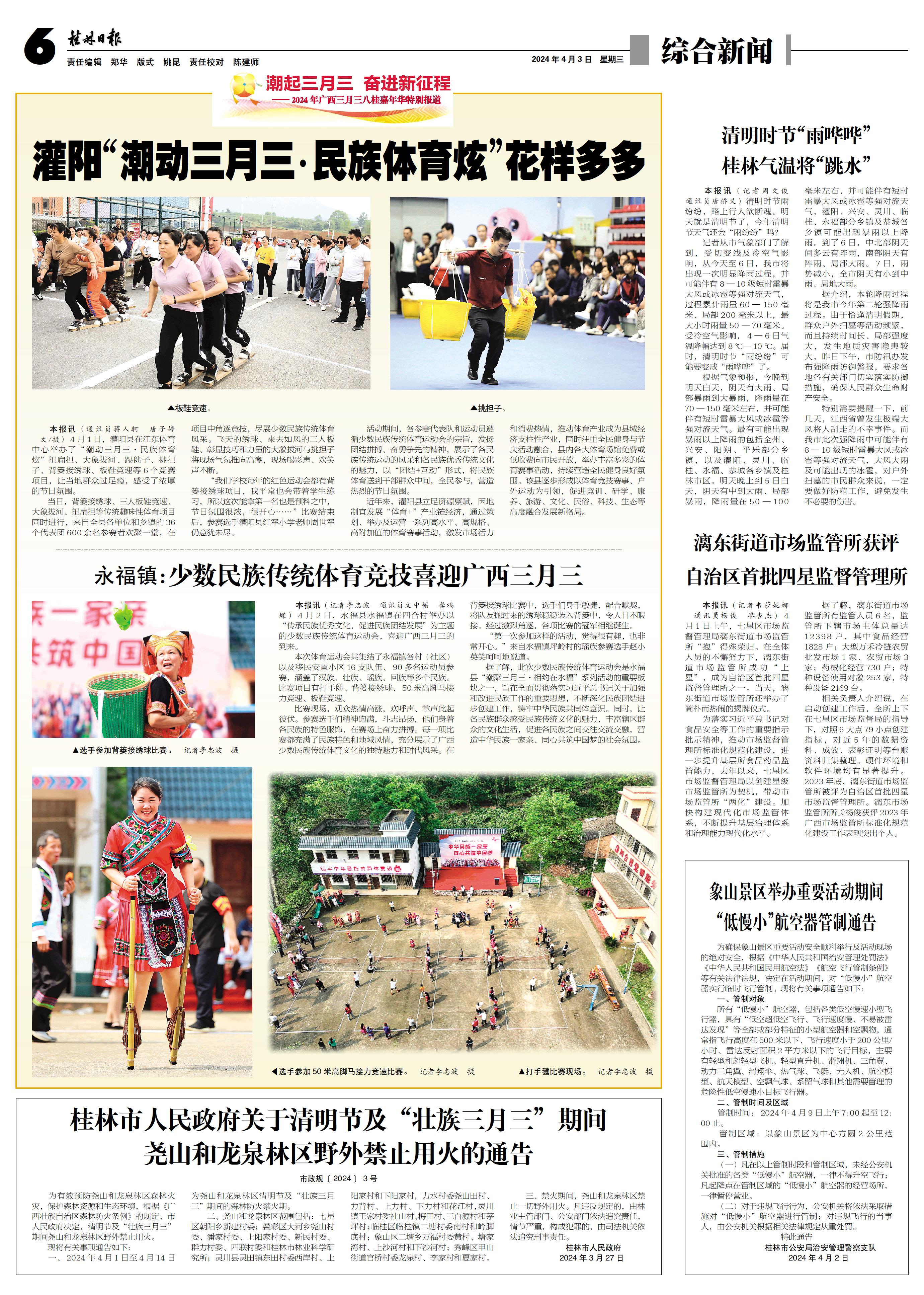 桂林市人民政府关于清明节及“壮族三月三”期间