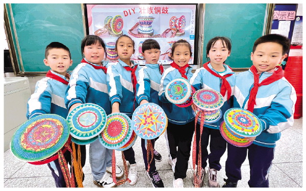 ◥“三月三”前夕,桂林市中华小学开展了学习民族文化,制作铜鼓等活动,提升学生们的艺术审美和创造力,增强文化自信,迎接节日的到来。