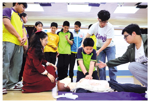 4月2日,桂林市人民医院的医护人员来到桂林市聋哑学校,为这里的特殊学生送来一批医药,并为他们开展健康急救知识讲座。医护人员通过讲解、演示,并指导师生现场体验,让他们进一步掌握急救知识,增强自救互救能力,保护生命健康。记者李凯 摄