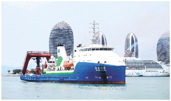 ▲“探索一号”科考船搭载“奋斗者”号全海深载人潜水器返回海南三亚(2024年3月28日摄)。此次科考历时50天,顺利完成中国-印度尼西亚爪哇海沟联合深潜任务。 新华社发(沙晓峰 摄)