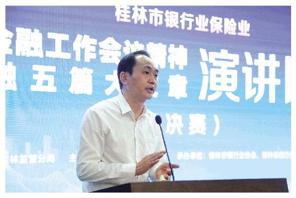 本报讯(记者徐莹波 通讯员赵瑜鑫)日前,桂林市银行业保险业“学深中央金融工作会议精神 做透金融五篇大文章”主题演讲比赛举行。本次比赛由国家金融监督管理总局桂林监管分局指导,市金融团工委主办,市银行业协会、桂林保险行业协会承办,广西桂林漓江农村合作银行协办。