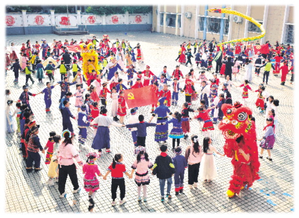 桂林市铁路西小学举办2024年广西“三月三”八桂嘉年华民族团结教育主题实践活动,师生们身着节日盛装,一同唱山歌、跳民族舞、赶大集,体验民俗活动,共同绘就一幅各民族其乐融融、家校和谐共处的美好画卷。