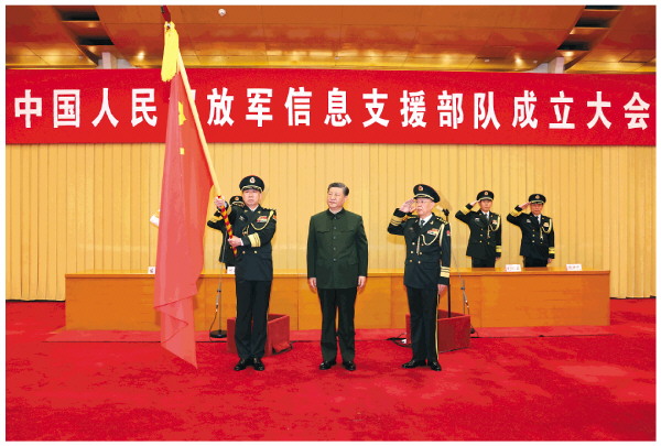 新华社北京4月19日电(记者梅常伟)中国人民解放军信息支援部队成立大会19日在北京八一大楼隆重举行。中共中央总书记、国家主席、中央军委主席习近平向信息支援部队授予军旗并致训词,代表党中央和中央军委向信息支援部队全体官兵致以热烈祝贺。他强调,要贯彻新时代强军思想,贯彻新时代军事战略方针,坚持政治建军、改革强军、科技强军、人才强军、依法治军,聚焦备战打仗,按照体系融合、全域支撑的战略要求,锐意进取,扎实工作,努力建设一支强大的现代化信息支援部队。 下午4时,成立大会开始,全场高唱国歌。仪仗礼兵护卫着军旗,正步行进到主席台前。习近平将军旗授予信息支援部队司令员毕毅、政治委员李伟。信息支援部队主要领导向习近平敬礼,从习近平手中接过军旗,持旗肃立。全体官兵向军旗庄严敬礼。 授旗仪式后,习近平致训词。他指出,调整组建信息支援部队,是党中央和中央军委从强军事业全局出发作出的重大决策,是构建新型军兵种结构布局、完善中国特色现代军事力量体系的战略举措,对加快国防和军队现代化、有效履行新时代人民军队使命任务具有重大而深远的意义。 习近平强调,信息支援部队是全新打造的战略性兵种,是统筹网络信息体系建设运用的关键支撑,在推动我军高质量发展和打赢现代战争中地位重要、责任重大。要坚决听党指挥,全面贯彻党对军队绝对领导的根本原则和制度,全面加强部队党的建设,坚定理想信念,严肃纪律规矩,弘扬优良作风,确保部队绝对忠诚、绝对纯洁、绝对可靠。要有力支撑作战,坚持信息主导、联合制胜,畅通信息链路,融合信息资源,加强信息防护,深度融入全军联合作战体系,精准高效实施信息支援,服务保障各方向各领域军事斗争。要加快创新发展,坚持作战需求根本牵引,加强体系统筹,推进共建共享,强化科技创新,建设符合现代战争要求、具有我军特色的网络信息体系,高质量推动体系作战能力加速提升。要夯实部队基础,落实全面从严治军要求,严格教育管理,保持正规秩序,激发动力活力,全面锻造过硬基层,确保部队高度集中统一和安全稳定,奋力开创部队建设新局面,坚决完成党和人民赋予的各项任务。 李伟代表信息支援部队发言,表示要坚决贯彻习主席重要指示,坚决听从党中央、中央军委和习主席指挥,聚力备战打仗,忠诚履职尽责,决不辜负党和人民重托。 大会在雄壮的军歌声中结束。之后,习近平接见了信息支援部队领导班子成员,并同大家合影留念。 成立大会上,中共中央政治局委员、中央军委副主席张又侠宣读了习近平签发的中央军委关于组建信息支援部队的命令、信息支援部队领导班子成员任职命令和党委常委会组成通知,中共中央政治局委员、中央军委副主席何卫东主持大会。 中央军委委员刘振立、苗华、张升民出席大会。军委机关各部委、军委各直属机构、各战区、各军兵种、军委各直属单位、武警部队有关负责同志,各军兵种和武警部队官兵代表、文职人员代表等参加大会。 根据中央军委决定,新组建的信息支援部队由中央军委直接领导指挥,同时撤销战略支援部队番号,相应调整军事航天部队、网络空间部队领导管理关系。