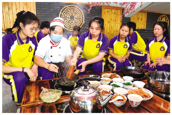 在特教学校里开展残疾人青少年就业创业孵化站建设是一项惠及残疾青少年就业创业的好事、实事。去年,国家级残疾人职业培训基地“残疾人青少年就业创业孵化站建设项目”落地桂林市聋哑学校,目前该项目已完成并通过相关部门的评估验收。图为桂林市聋哑学校的师生们在揭牌仪式上展示了油茶职业课程等内容。
