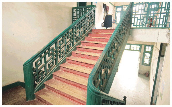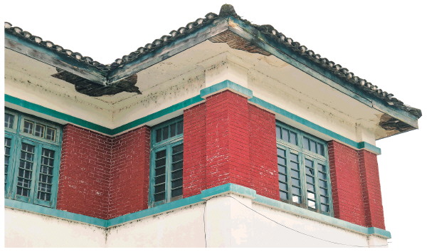 走进位于雁山镇原桂林市农业科学院办公地,很快便发现了这栋颇具民国特色的建筑,建筑坐北朝南,东西长30米,南北宽15米,通高约10米。平面呈“H”形,为二层砖木结构,一楼置门廊,二楼设露台。由于原单位已不在此办公,这栋楼房目前处于闲置状态,建筑的整体虽完整,但已有多处明显破损。在建筑入口一侧立有“桂林市文物保护单位”石碑,上面标注此建筑为“民国广西大学分部旧址”。