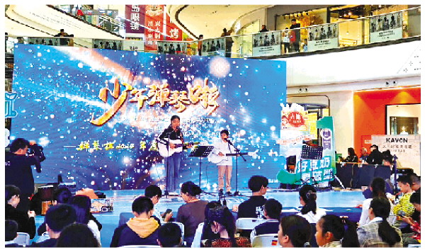 5月3日,由桂林市吉他学会主办,弹琴啦吉他学习中心承办的“少年弹琴啦”文艺汇演活动在高新万达广场拉开帷幕。近百名青少年吉他爱好者自弹自唱,歌颂劳动的光荣,歌唱生活的美好。记者韦莎妮娜 摄