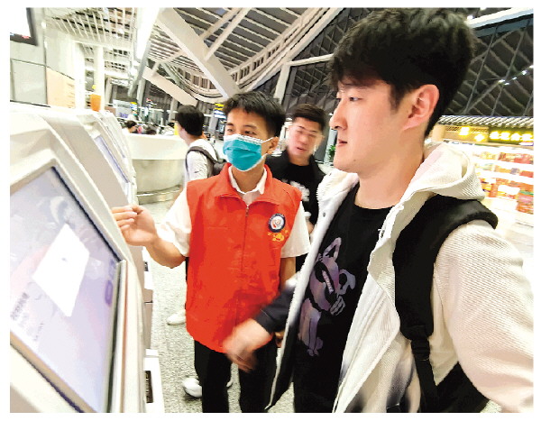 5月1日,桂林机场团委组织开展服务旅客志愿服务活动。身穿“红马甲”的志愿者在繁忙的T2航站楼穿梭,协助旅客办理自助值机,耐心解答旅客咨询,协助老年人等特殊旅客过安检、登机等,确保每一位旅客都能享受到温馨而顺畅的乘机体验。据悉,桂林机场1日当天保障航班起降157架次,同比增长6.8%;旅客吞吐量22142人次,同比增长36.08%。 记者李凯 通讯员 黄芷菡 摄