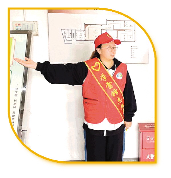 王鑫洋正在为参观的游客指路。记者蒋璇 摄