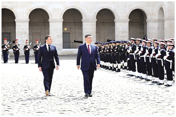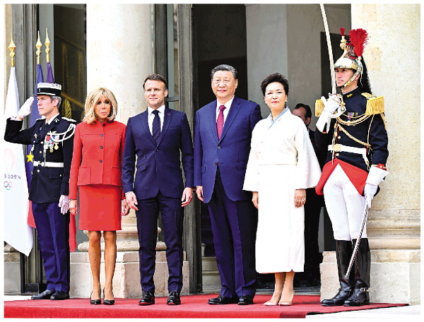五月的巴黎,风和景明。塞纳河畔,荣军院金色穹顶熠熠生辉,五星红旗和蓝白红三色旗迎风飘扬。