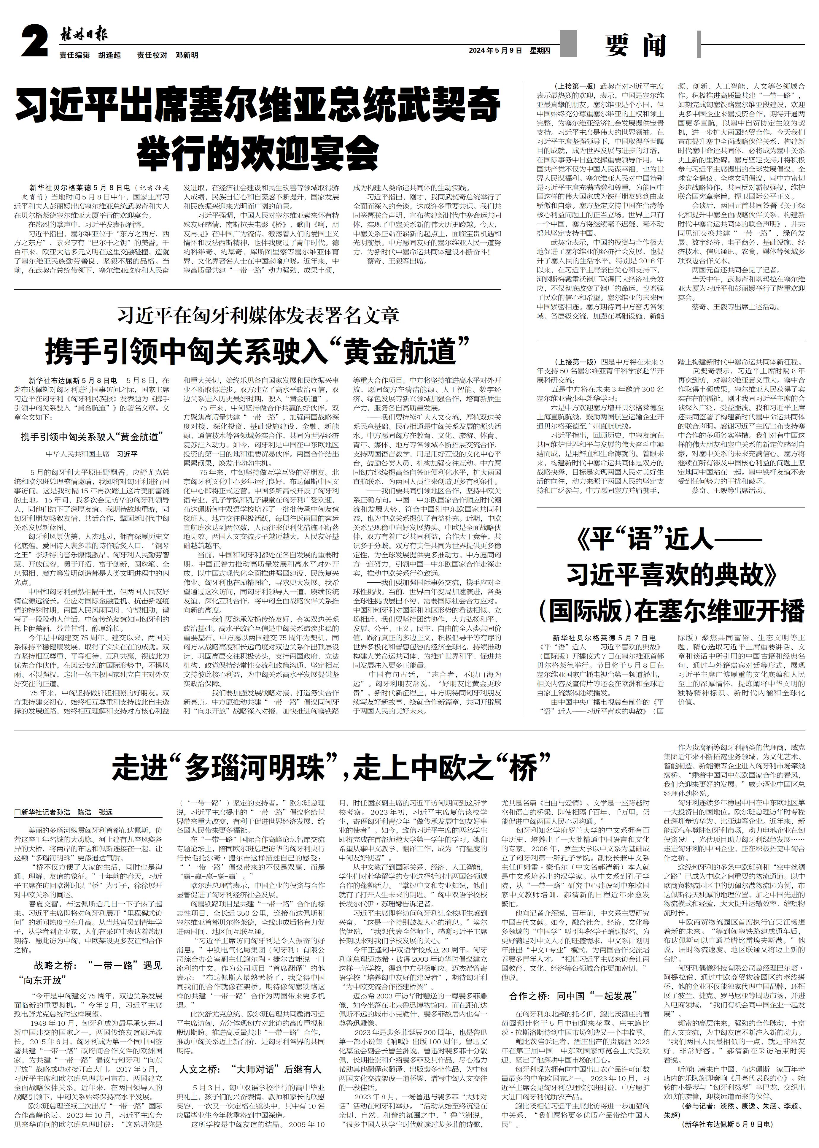携手引领中匈关系驶入“黄金航道” 中华人民共和国主席 习近平 5月的匈牙利大平原田野飘香。应舒尤克总统和欧尔班总理盛情邀请,我即将对匈牙利进行国事访问。这是我时隔15年再次踏上这片美丽富饶的土地。15年间,我多次会见访华的匈牙利领导人,同他们结下了深厚友谊。我期待故地重游,同匈牙利朋友畅叙友情、共话合作,擘画新时代中匈关系发展新蓝图。 匈牙利风景优美、人杰地灵,拥有深厚历史文化底蕴。爱国诗人裴多菲的诗作脍炙人口,“钢琴之王”李斯特的音乐慷慨激昂。匈牙利人民勤劳智慧、开放包容,勇于开拓、富于创新,圆珠笔、全息照相、魔方等发明创造都是人类文明进程中的闪光点。 中国和匈牙利虽然相隔千里,但两国人民友好情谊源远流长。在应对国际金融危机、抗击新冠疫情的特殊时期,两国人民风雨同舟、守望相助,谱写了一段段动人佳话。中匈传统友谊如同匈牙利的托卡伊美酒,芬芳甘甜、醇厚绵长。 今年是中匈建交75周年。建交以来,两国关系保持平稳健康发展,取得了实实在在的成就。双方坚持相互尊重、平等相待、互利共赢,视彼此为优先合作伙伴,在风云变幻的国际形势中,不惧风雨、不畏强权,走出一条主权国家独立自主对外友好交往的正道。 75年来,中匈坚持做肝胆相照的好朋友。双方秉持建交初心,始终相互尊重和支持彼此自主选择的发展道路,始终相互理解和支持对方核心利益和重大关切,始终乐见各自国家发展和民族振兴事业不断取得进步。双方建立了高水平政治互信,双边关系进入历史最好时期,驶入“黄金航道”。 75年来,中匈坚持做合作共赢的好伙伴。双方聚焦高质量共建“一带一路”,加强两国战略深度对接,深化投资、基础设施建设、金融、新能源、通信技术等各领域务实合作,共同为世界经济复苏注入动力。如今,匈牙利是中国在中东欧地区投资的第一目的地和重要贸易伙伴。两国合作结出累累硕果,焕发出勃勃生机。 75年来,中匈坚持做互学互鉴的好朋友。北京匈牙利文化中心多年运行良好,布达佩斯中国文化中心即将正式运营。中国多所高校开设了匈牙利语专业,孔子学院和孔子课堂在匈牙利广受欢迎,布达佩斯匈中双语学校培养了一批批传承中匈友谊接班人。地方交往积极活跃,每周往返两国的客运直航班次达到两位数,人员往来便利化措施不断落地见效。两国人文交流步子越迈越大,人民友好基础越筑越牢。 当前,中国和匈牙利都处在各自发展的重要时期。中国正着力推动高质量发展和高水平对外开放,以中国式现代化全面推进强国建设、民族复兴伟业。匈牙利也在励精图治,寻求更大发展。我希望通过这次访问,同匈牙利领导人一道,赓续传统友谊,深化互利合作,将中匈全面战略伙伴关系推向新的高度。 ——我们要继承发扬传统友好,夯实双边关系政治基础。高水平政治互信是中匈关系蹄疾步稳的重要基石。中方愿以两国建交75周年为契机,同匈方从战略高度和长远角度对双边关系作出顶层设计,巩固高层交往积极势头,支持两国政府、立法机构、政党保持经常性交流和政策沟通,坚定相互支持彼此核心利益,为中匈关系高水平发展提供坚实政治保障。 ——我们要加强发展战略对接,打造务实合作新亮点。中方愿推动共建“一带一路”倡议同匈牙利“向东开放”战略深入对接,加快推进匈塞铁路等重大合作项目。中方将坚持推进高水平对外开放,愿同匈方在清洁能源、人工智能、数字经济、绿色发展等新兴领域加强合作,培育新质生产力,服务各自高质量发展。 ——我们要持续扩大人文交流,厚植双边关系民意基础。民心相通是中匈关系发展的源头活水。中方愿同匈方在教育、文化、旅游、体育、青年、媒体、地方等各领域不断拓展交流合作,支持两国语言教学,用足用好互设的文化中心平台,鼓励各类人员、机构加强交往互动。中方愿同匈方继续提高各自签证便利化水平,扩大两国直航联系,为两国人员往来创造更多有利条件。 ——我们要共同引领地区合作,坚持中欧关系正确方向。中国—中东欧国家合作顺应时代潮流和发展大势,符合中国和中东欧国家共同利益,也为中欧关系提供了有益补充。近期,中欧关系呈现稳中向好发展势头。中欧是全面战略伙伴,双方有着广泛共同利益,合作大于竞争,共识多于分歧。双方有责任共同为世界提供更多稳定性,为全球发展提供更多推动力。中方愿同匈方一道努力,引领中国—中东欧国家合作走深走实,推动中欧关系行稳致远。 ——我们要加强国际事务交流,携手应对全球性挑战。当前,世界百年变局加速演进,各类全球性挑战层出不穷,需要国际社会合力应对。中国和匈牙利对国际和地区形势的看法相似、立场相近。我们要坚持团结协作,大力弘扬和平、发展、公平、正义、民主、自由的全人类共同价值,践行真正的多边主义,积极倡导平等有序的世界多极化和普惠包容的经济全球化,持续推动构建人类命运共同体,为维护世界和平、促进共同发展注入更多正能量。 中国有句古话,“志合者,不以山海为远”。匈牙利朋友常说,“好朋友比黄金更珍贵”。新时代新征程上,中方期待同匈牙利朋友续写友好新故事,绘就合作新篇章,共同开辟属于两国人民的美好未来。