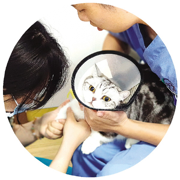 宠物医院的医生正在给宠物猫治疗。(受访者供图)