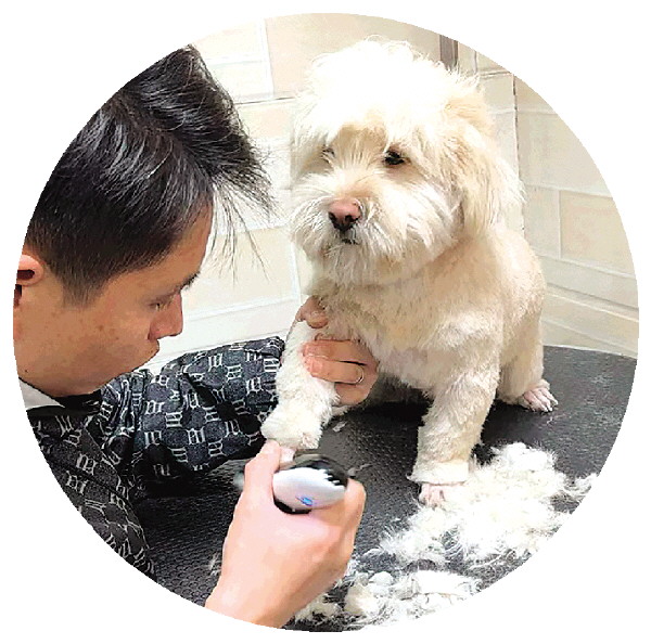 宠物生活馆工作人员给宠物狗修剪指甲。(受访者供图)