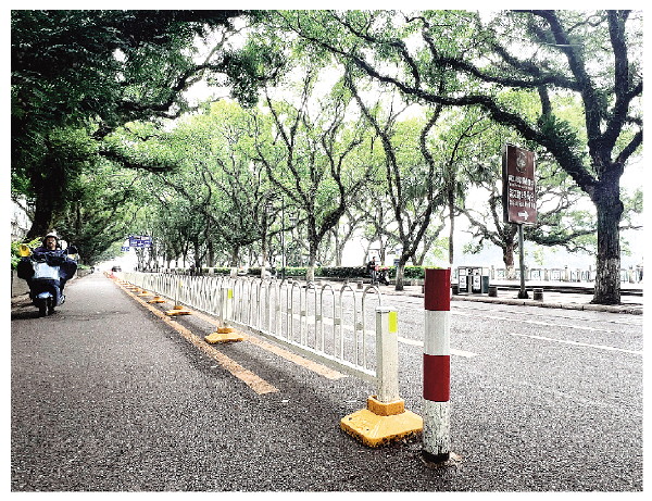 优化调整后,新设置的隔离护栏让非机动车通行更有序。记者陈静 摄