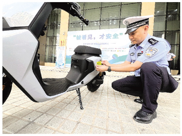 □本报记者 陈静 文/摄 近年来,电动自行车、三轮电动车已成为群众出行时普遍采用的交通工具,由此带来的道路安全隐患也逐渐增多,尤其在夜间出行时,因为车辆灯光亮度不够,安全防护不全面,各类事故防不胜防。 为落实“创人民满意公安”活动要求,预防和减少城郊及农村地区夜间部分道路照明条件不足引发的道路交通事故,5月27日,市公安交警部门在全市范围启动“被看见 才安全”专项行动,免费为电动自行车、电动三轮车等车辆粘贴反光标识,让群众夜间出行更安全。