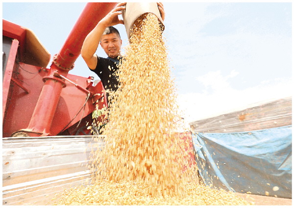 5月27日,在河南省开封市城乡一体化示范区水稻乡陈坟村,村民在收获小麦。