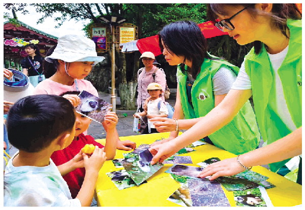 “这个是白头叶猴。白头叶猴可谓‘石山精灵’,它们的头发是白的,爱吃叶子,是我国一级保护动物。”6月1日,广西师范大学生命科学学院“石山精灵”科普团队的志愿者们走进七星景区,向来往的市民游客科普动物保护知识。在志愿者的引导下,不少市民带着孩子还参与到“画一画”“捏一捏”“猜一猜”等项目中,通过动笔画猴子、黏土捏猴子和有奖竞猜,加深对白头叶猴的认识,树立保护动植物的意识。记者韦莎妮娜 摄
