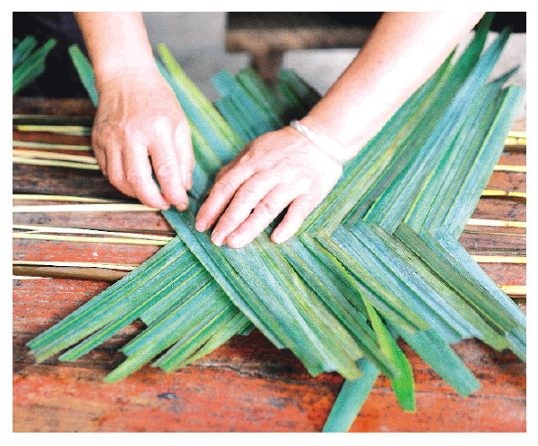 “选取长势好,没有虫眼的叶片,剪掉头尾,留下中间约40—50厘米长。黄茅叶有一种特别的清香,与做普通粽子的叶子不一样,黄茅草叶非常窄,只有1—2厘米宽,因此制作难度要高一些。”许凤群介绍道。